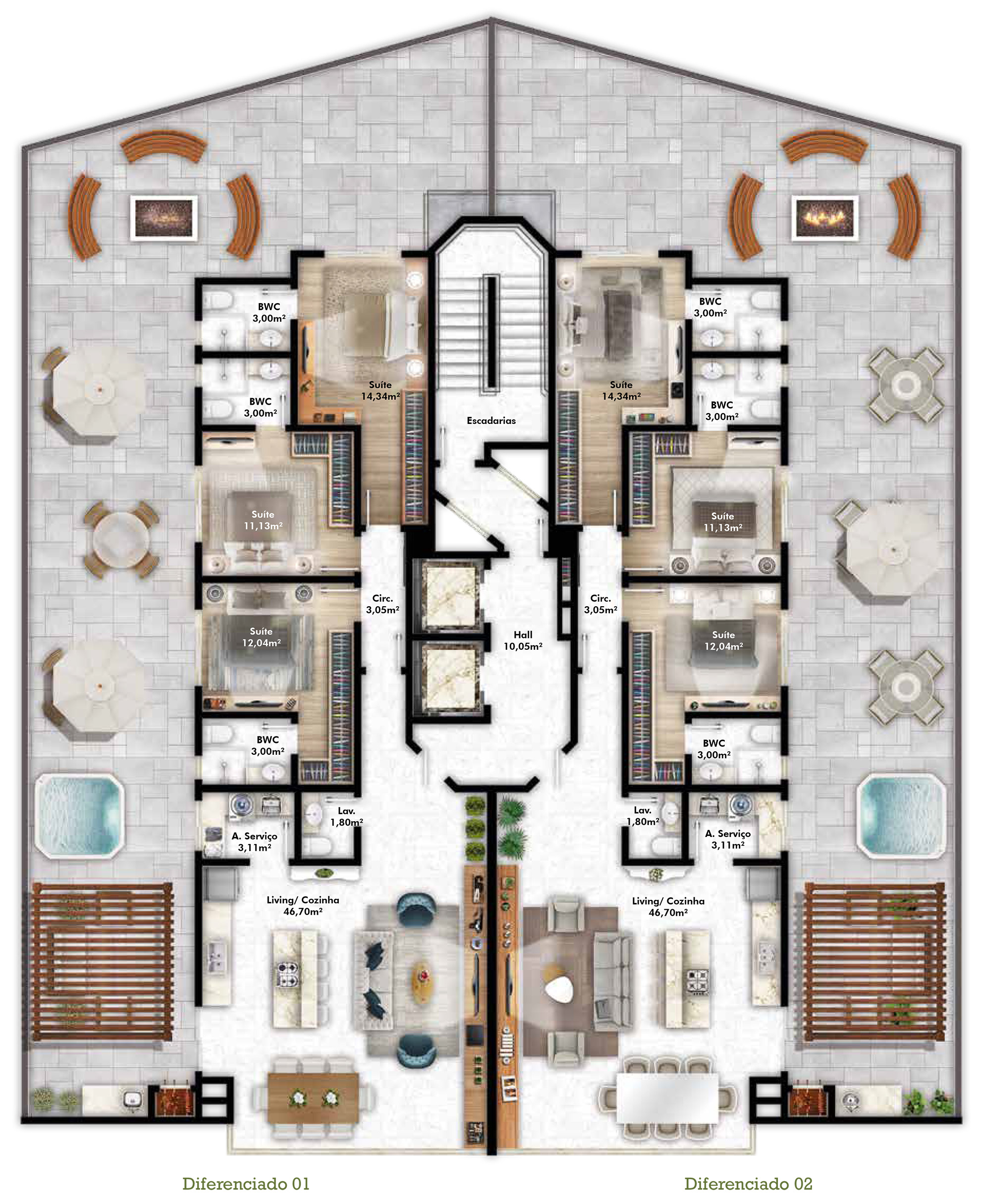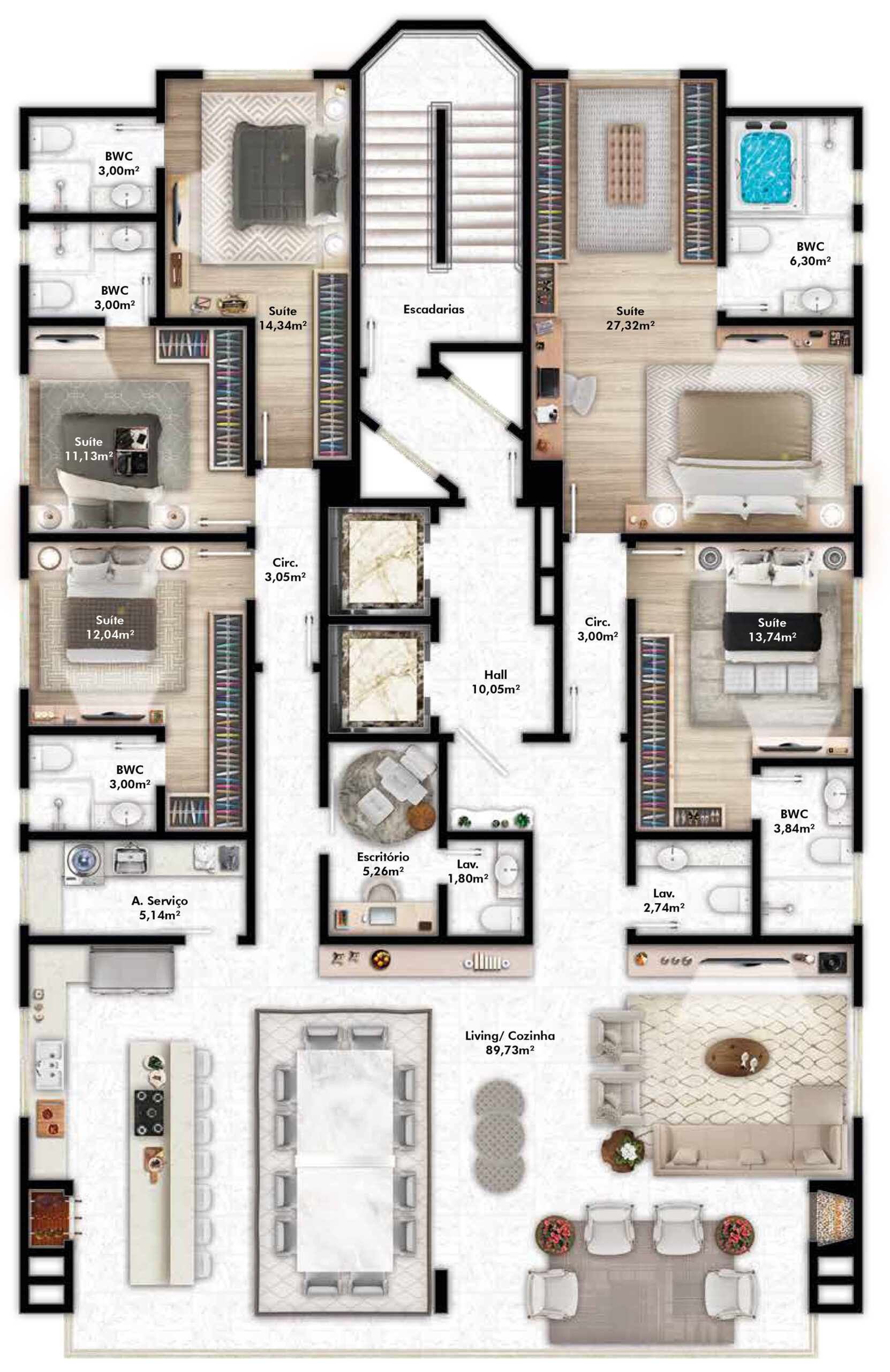 - Penthouse com apenas 01 apartamento por andar (05 suítes,