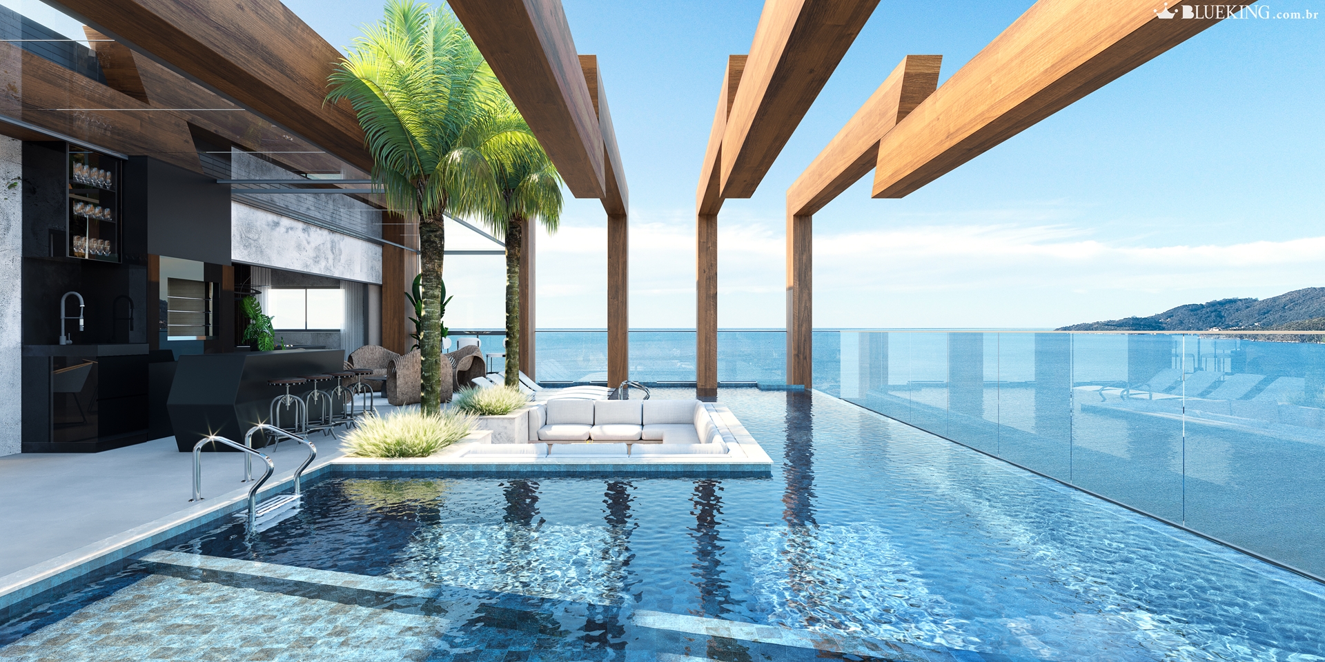 - Área de lazer no rooftop mobiliado e decorado