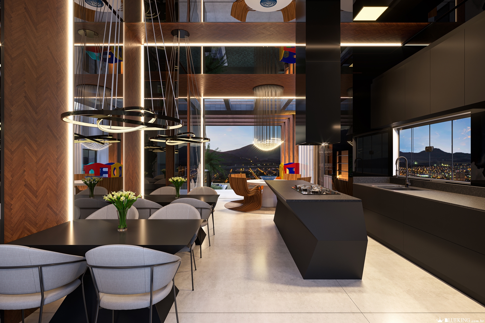 - Living com ambientes integrados com churrasqueira