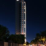 Inspirado na finesse aerodinâmica do automobilismo esportivo de luxo, o design da fachada exibe linhas dinâmicas e uma estética sofisticada, trazendo o charme e a força para o cenário urbano como uma expressão viva de arte e exclusividade, destacando-se brilhantemente em meio a paisagem da cidade