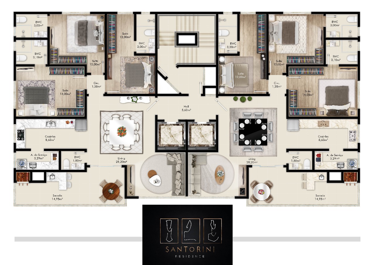 - 02 Apartamentos por andar com 182 m² de área total, com 24 Apartamentos